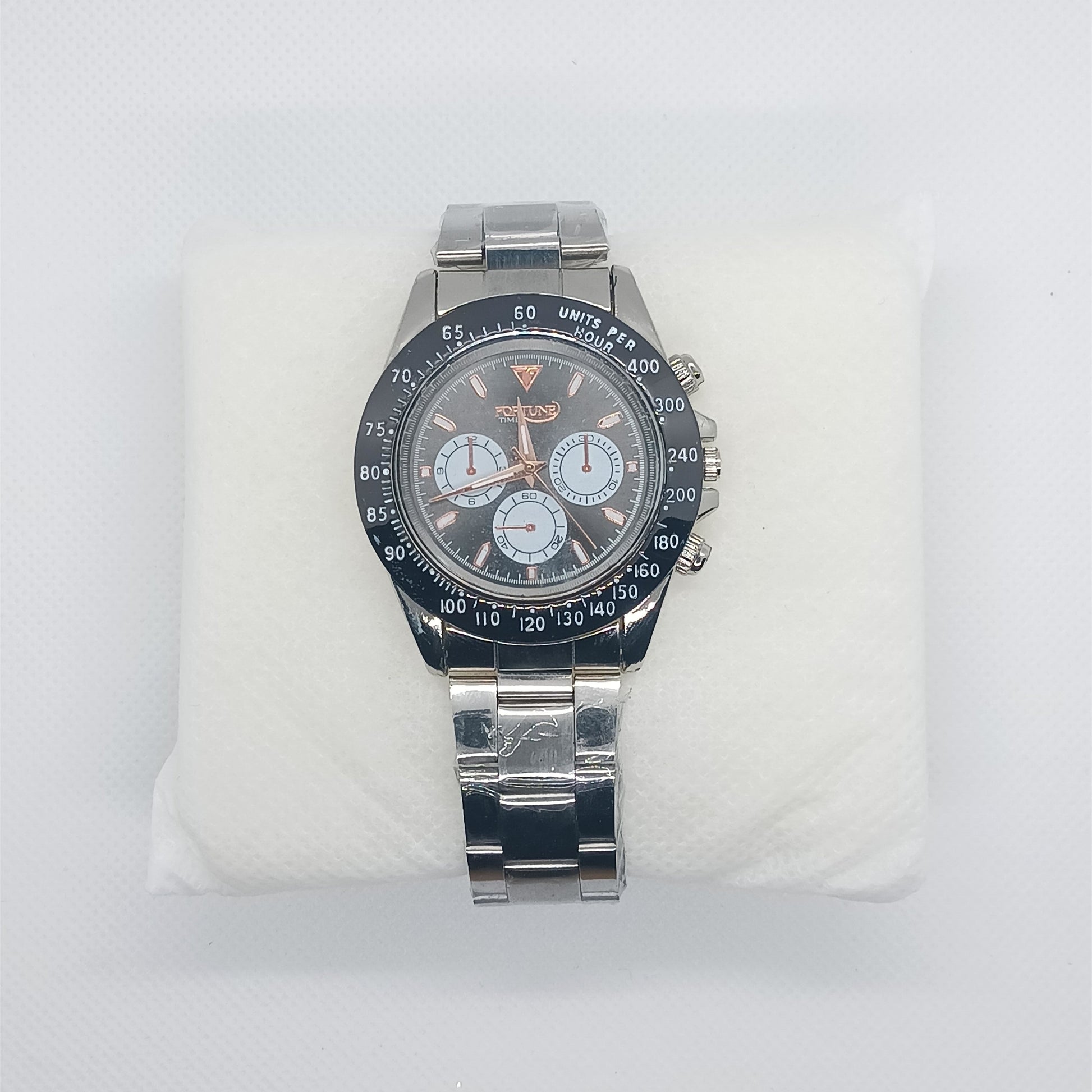 - Durable silver stainless steel strap