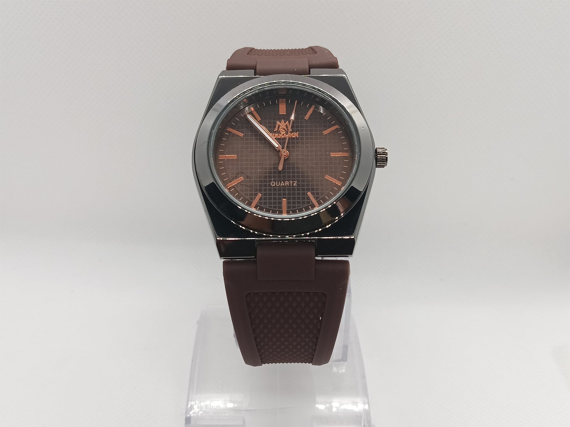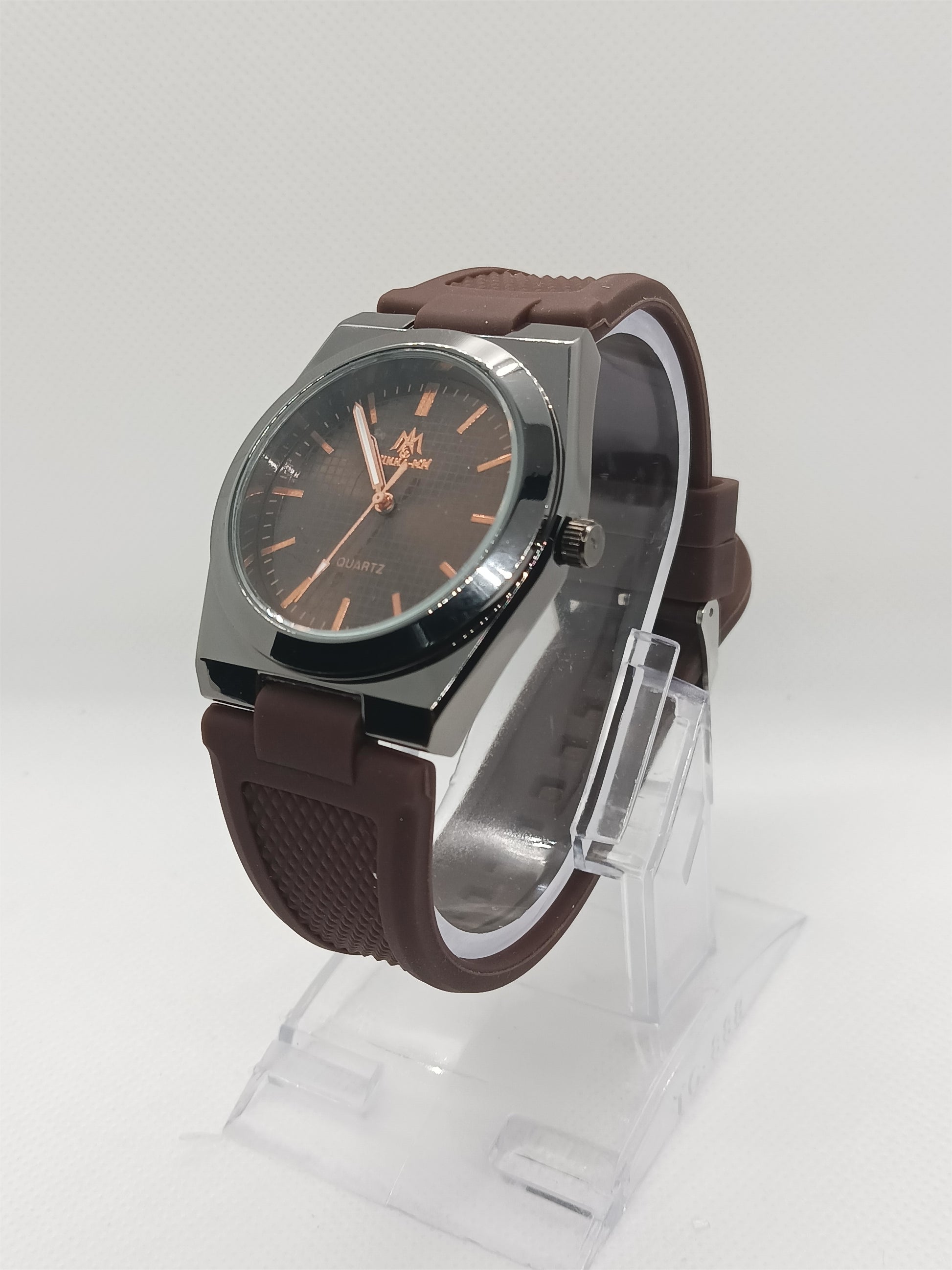 Brown Dial Men’s Watch – Rubber Strap, Water Resistant, Stylish Everyday Wear