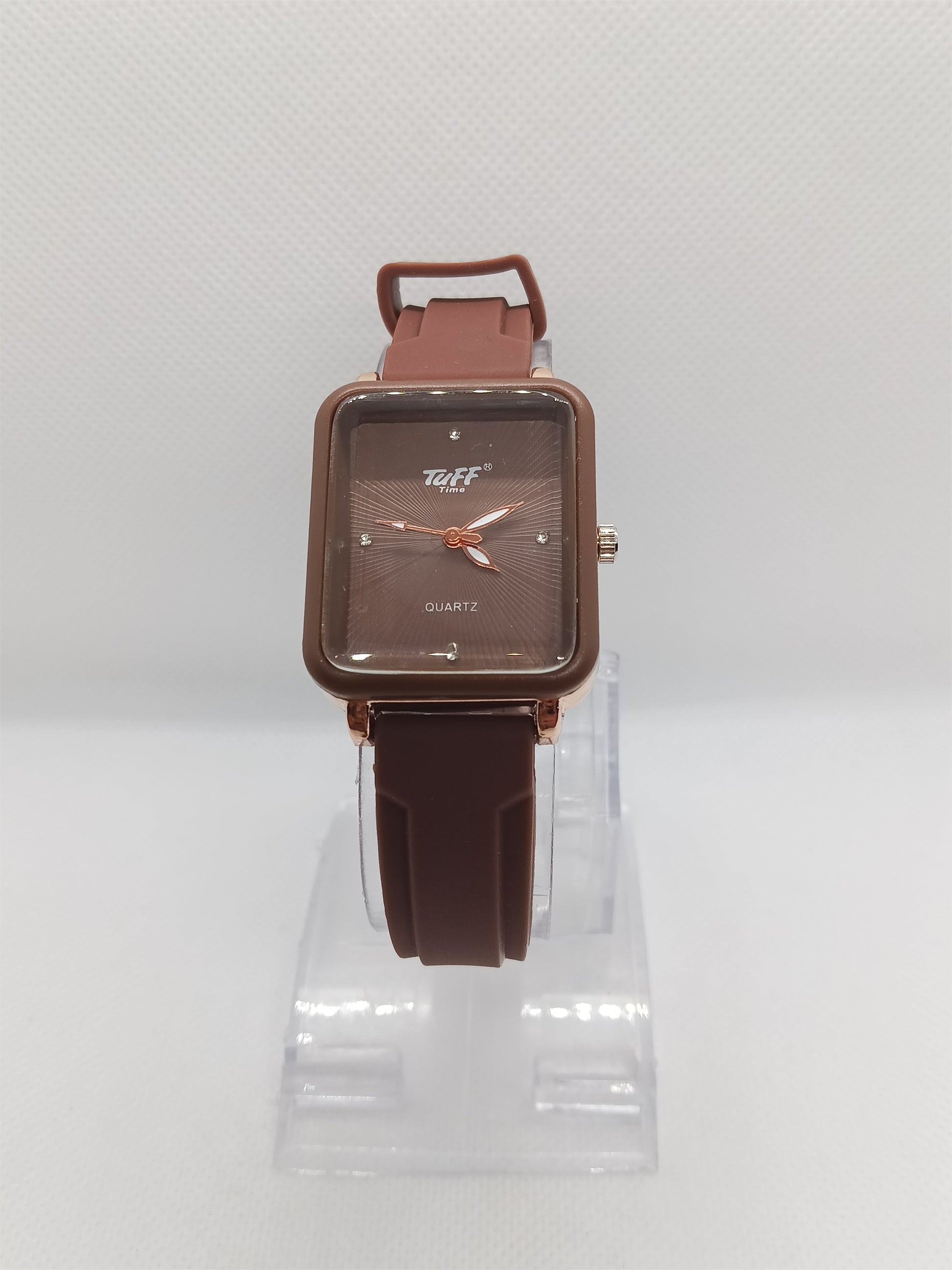 A bold yet simple statement piece — this brown square-dial watch combines modern design with everyday comfort. Its rose gold case and smooth silicone strap create a look that’s both confident and refined, perfect for a clean, stylish appearance.