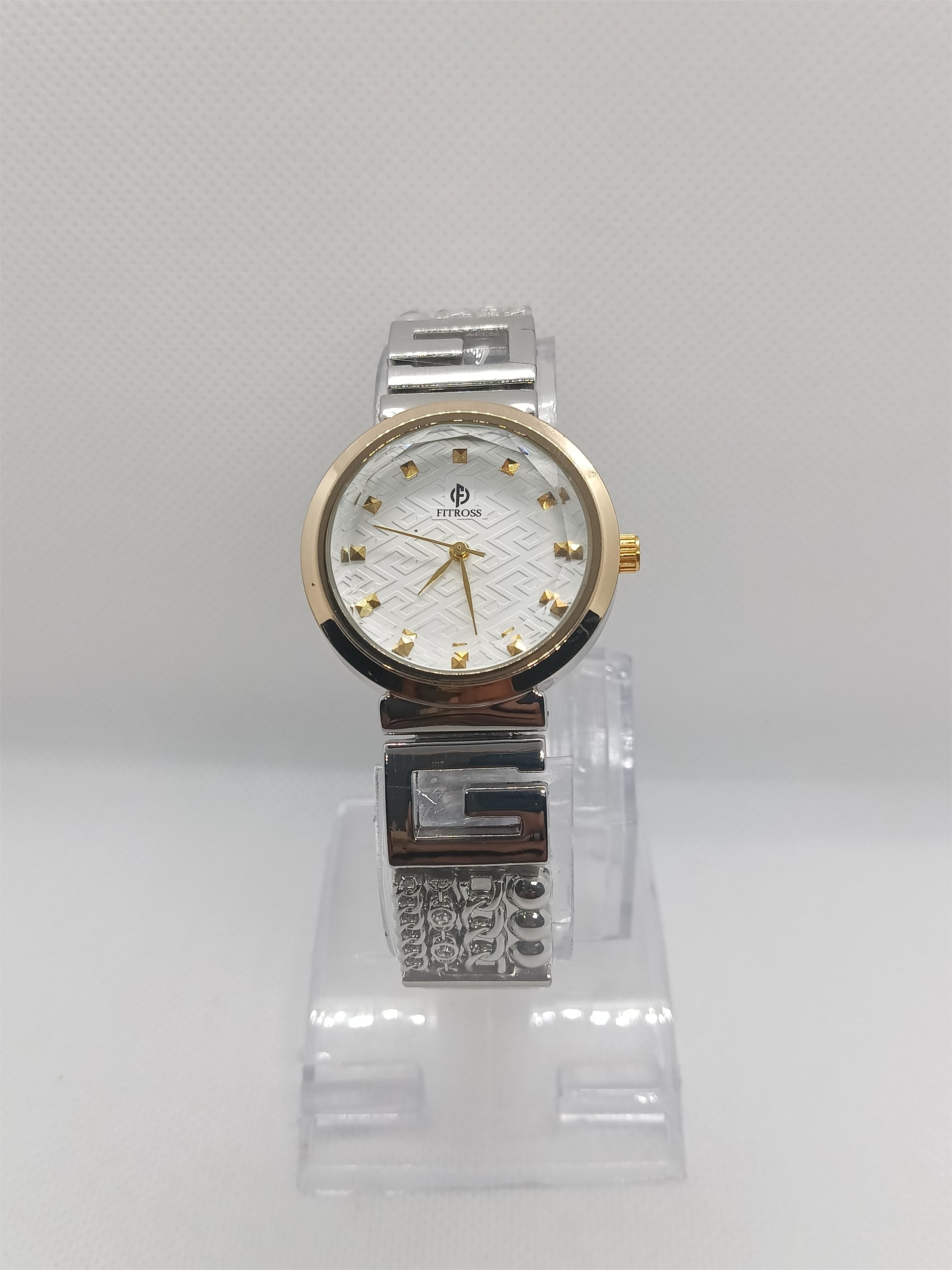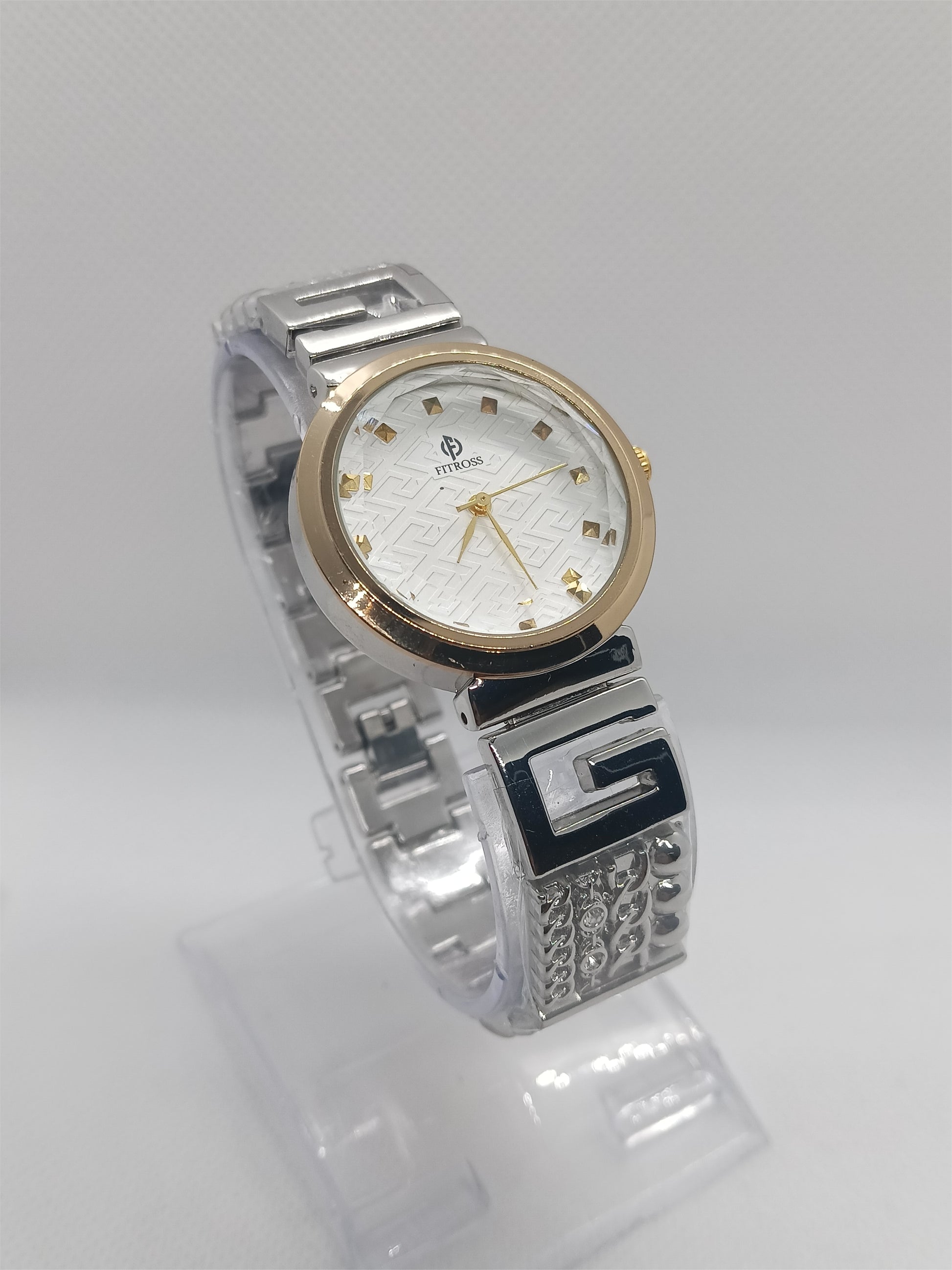The Elegant Grace Dual Tone Edition blends silver elegance with gold luxury. Its textured white dial, gold accents, and G-link silver strap make it a timeless fashion piece. A classy companion for work, events, or everyday chic wear.