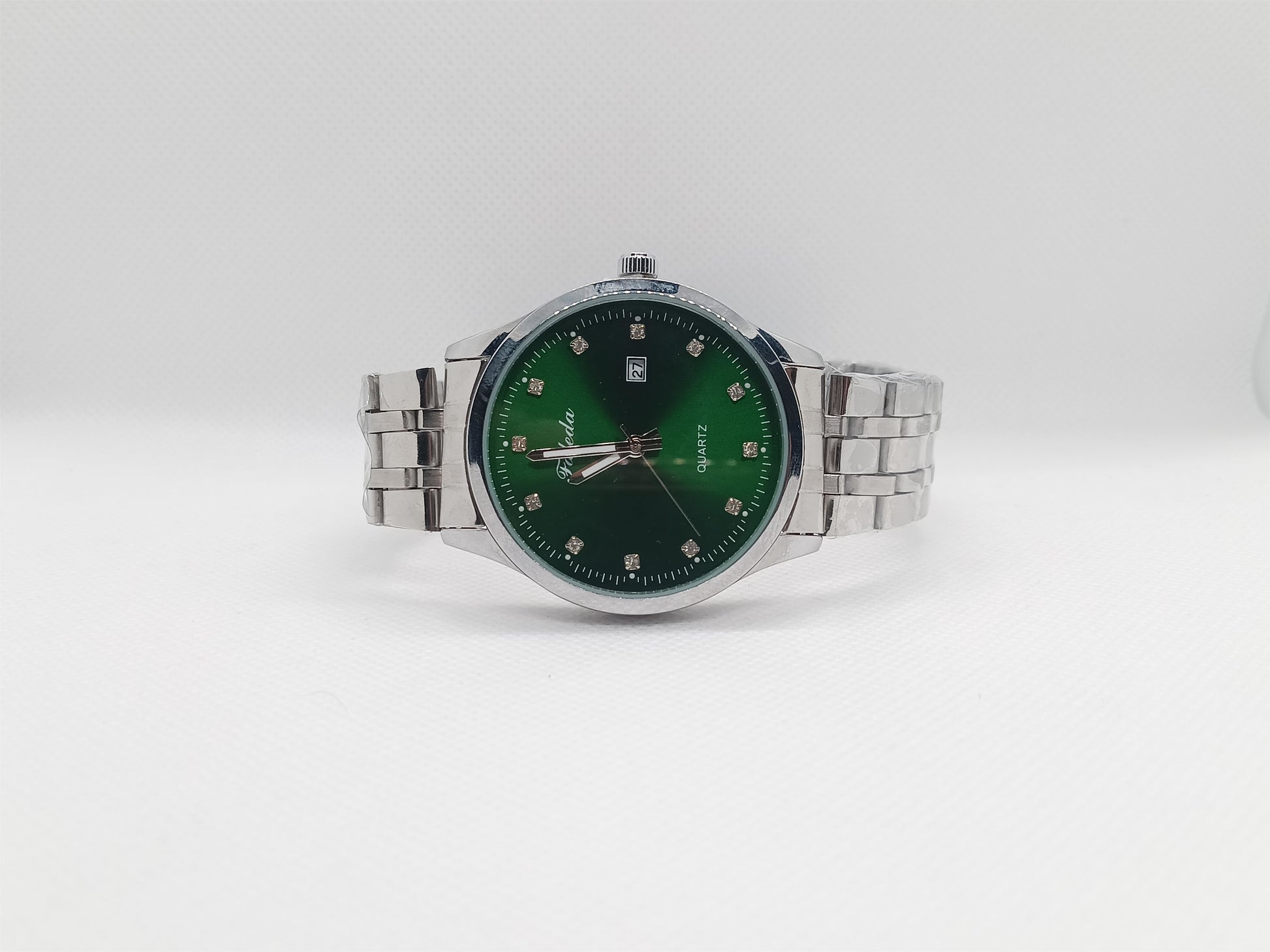 Green Luxury Dial Men’s Watch – Silver Stainless Steel Chain, Date Display, Water Resistant