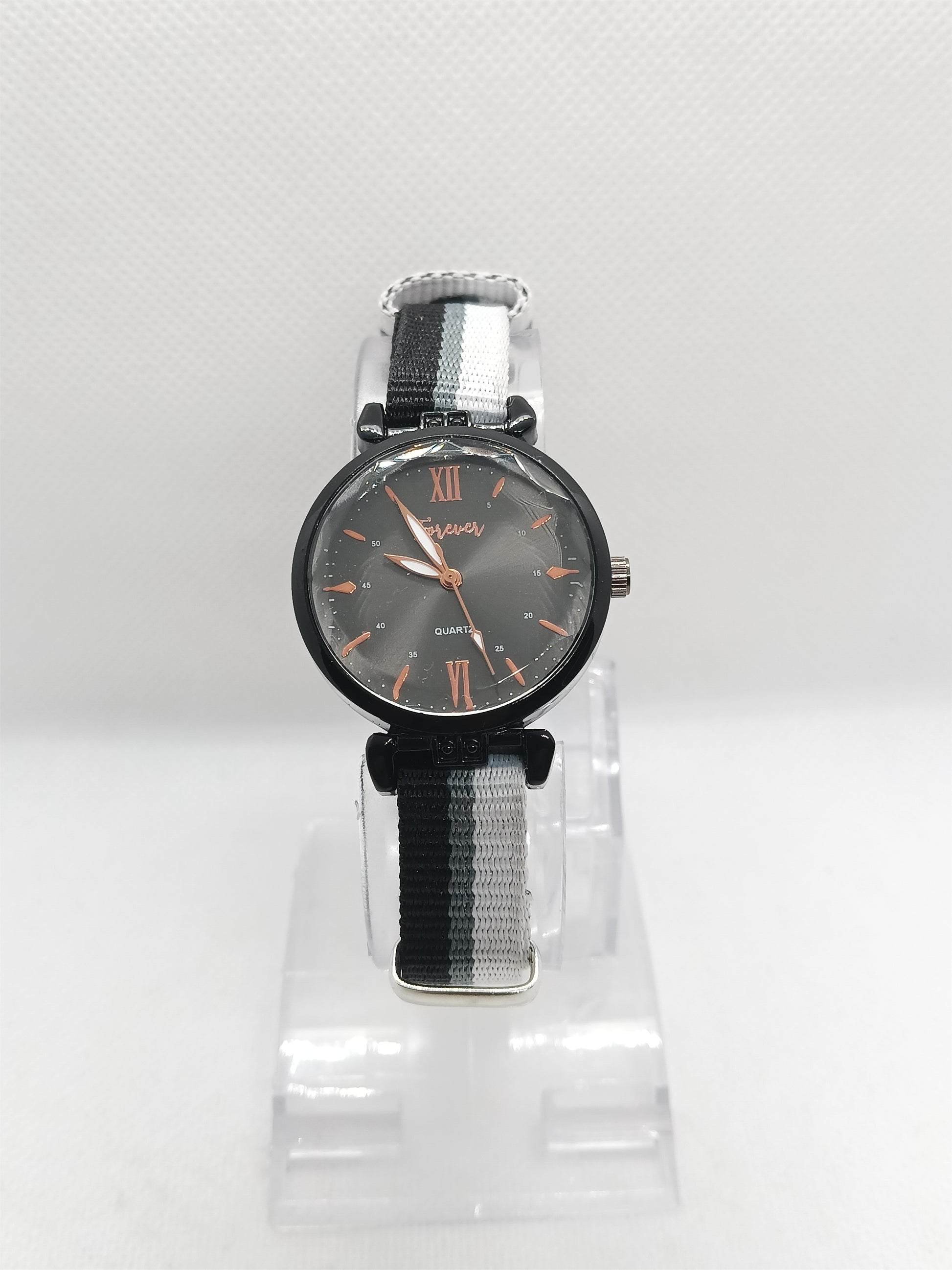 A simple and stylish watch made for women who love clean, modern accessories. The black dial with rose-gold hands looks elegant, while the soft fabric strap keeps it lightweight and comfortable for everyday wear.