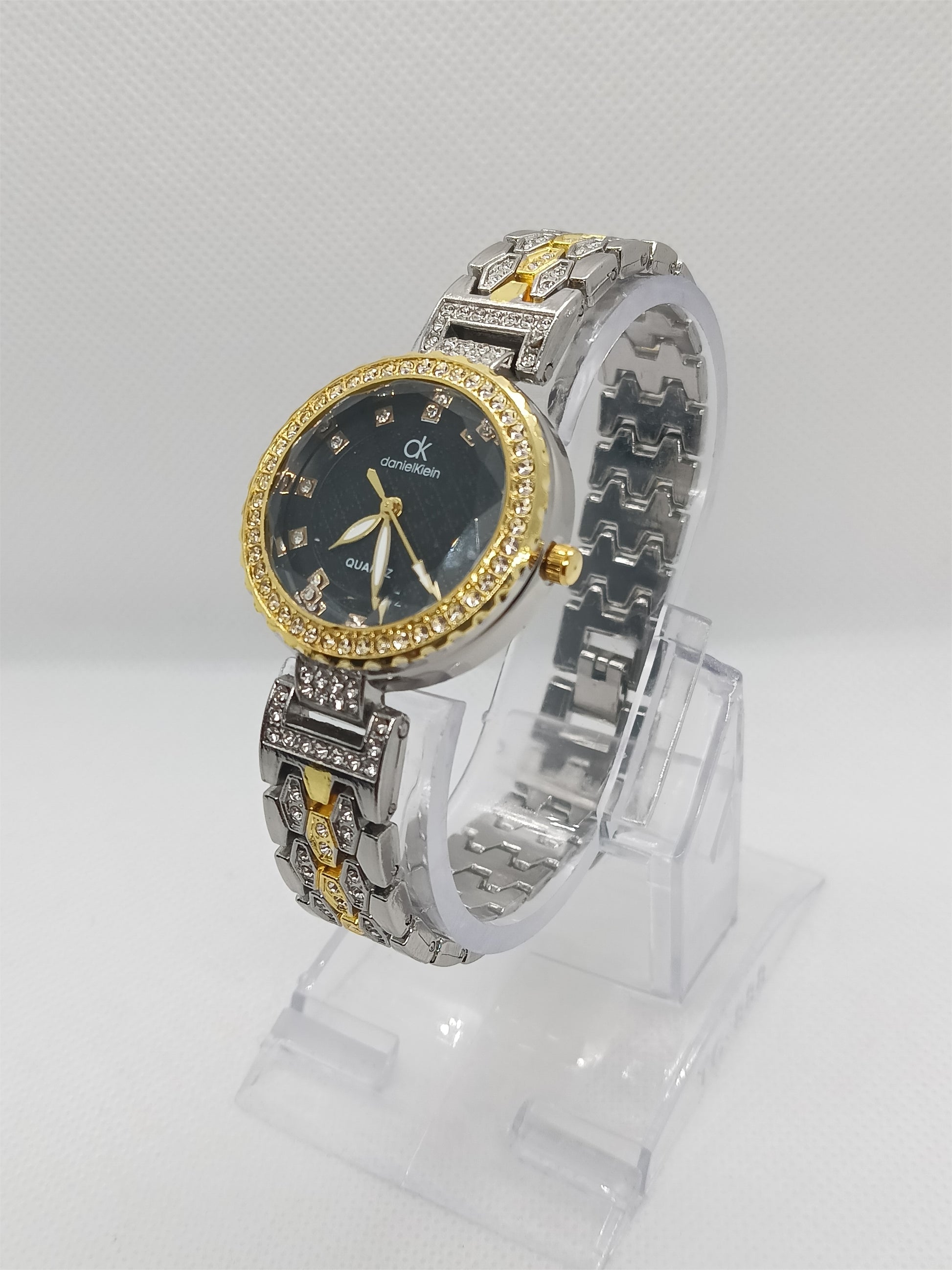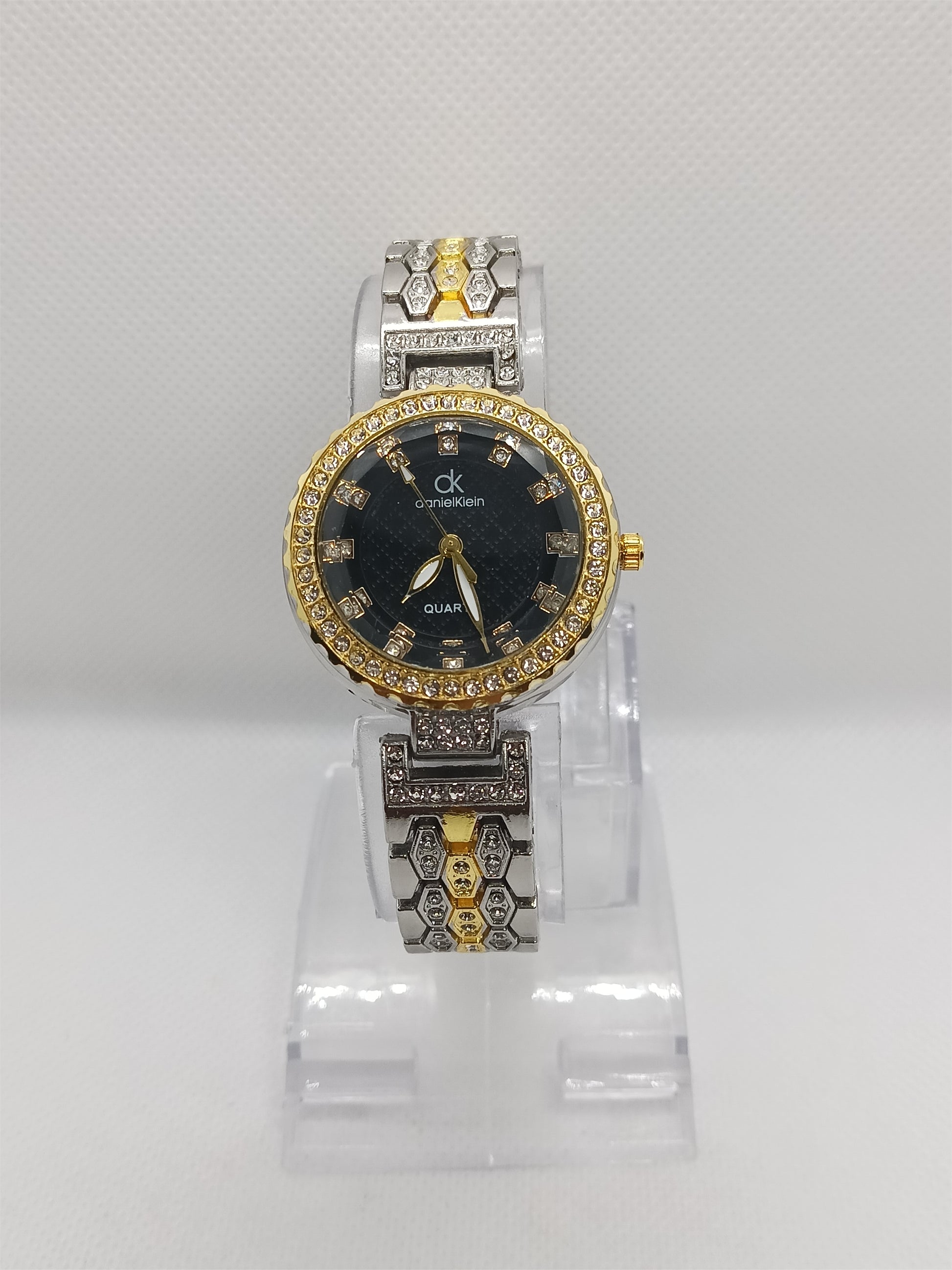 - Black dial surrounded by premium crystal stones