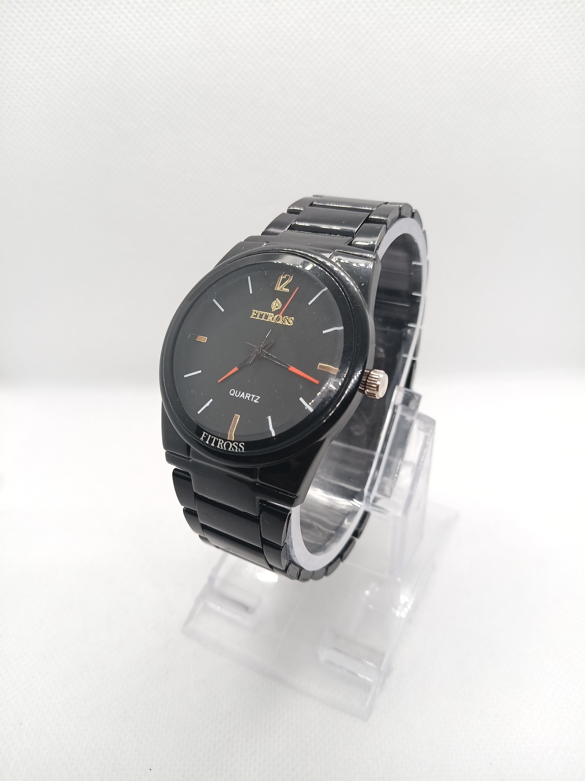 A sleek all-black watch made for men who prefer clean, confident style. The simple dial with subtle gold accents gives it a premium feel without being loud. It’s an everyday essential that looks sharp with both casual and smart outfits.