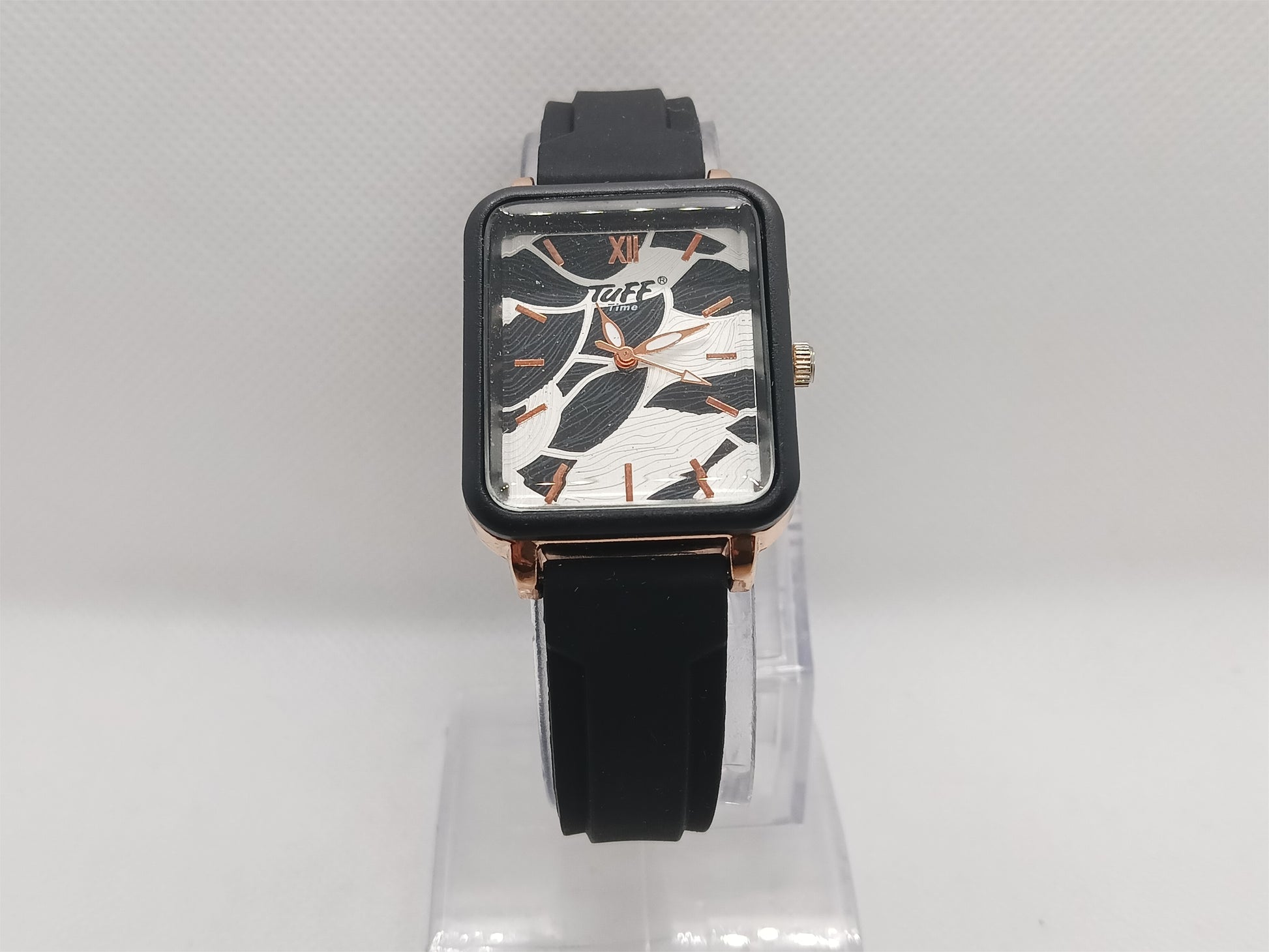 Bold and contemporary, this black square-dial watch offers a refined marble patterned face combined with a sleek dark strap. The neutral tone makes it a versatile piece that easily adapts to casual and semi-formal outfits. With its matte finish and square frame, it delivers a clean, structured look that feels stylish without being overly flashy.