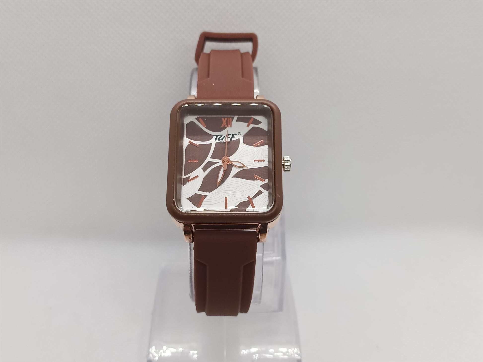 Inspired by warm stone textures and modern minimalism, this brown square-dial watch combines a smooth mocha strap with a marble-patterned face. The design feels artistic yet subtle, giving you a watch that looks unique without trying too hard. Its lightweight feel and contemporary rectangular frame make it an excellent match for classy casual looks and earthy fashion tones.
