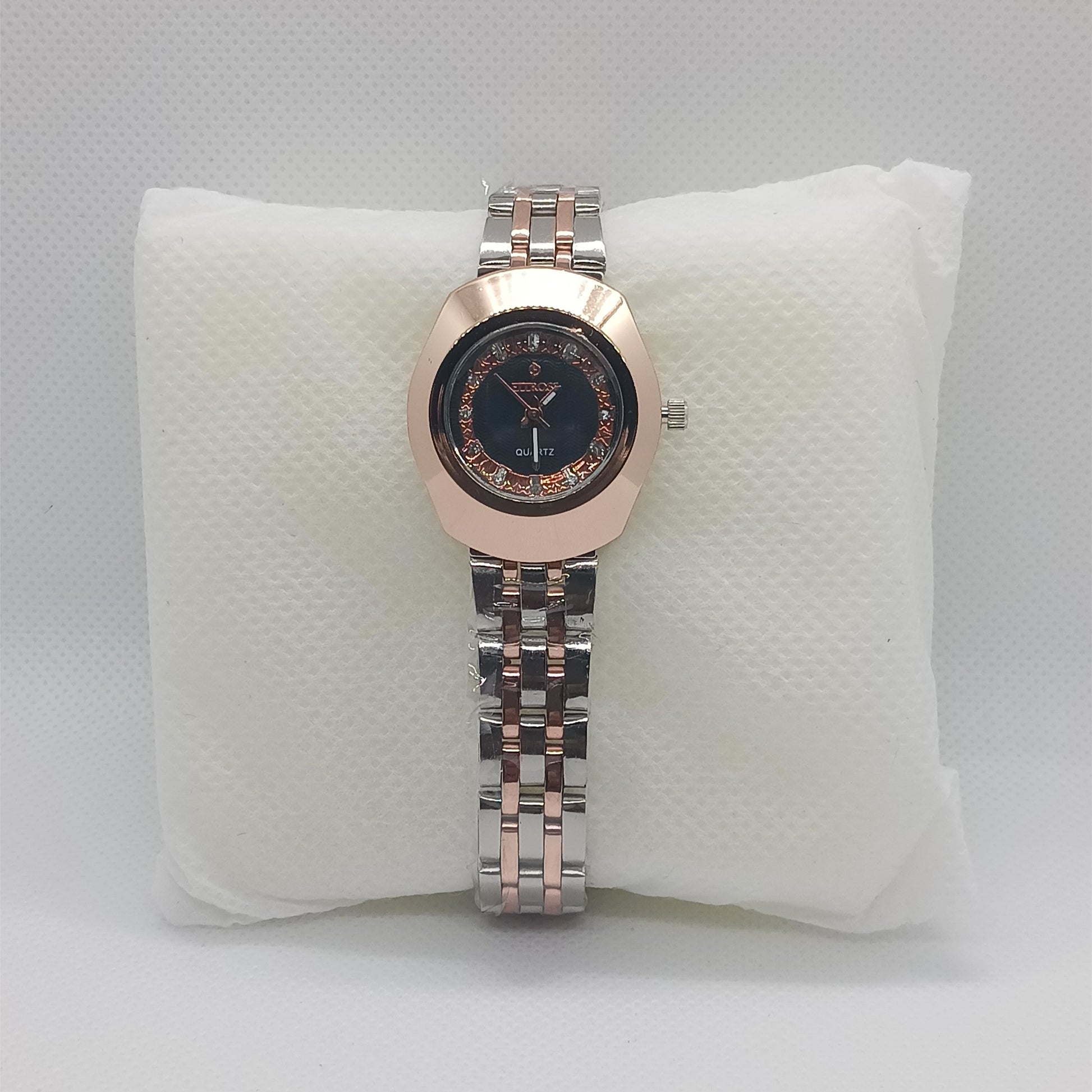 Modern Two-Tone Ladies’ Watch – Rose Gold Bezel & Black Dial