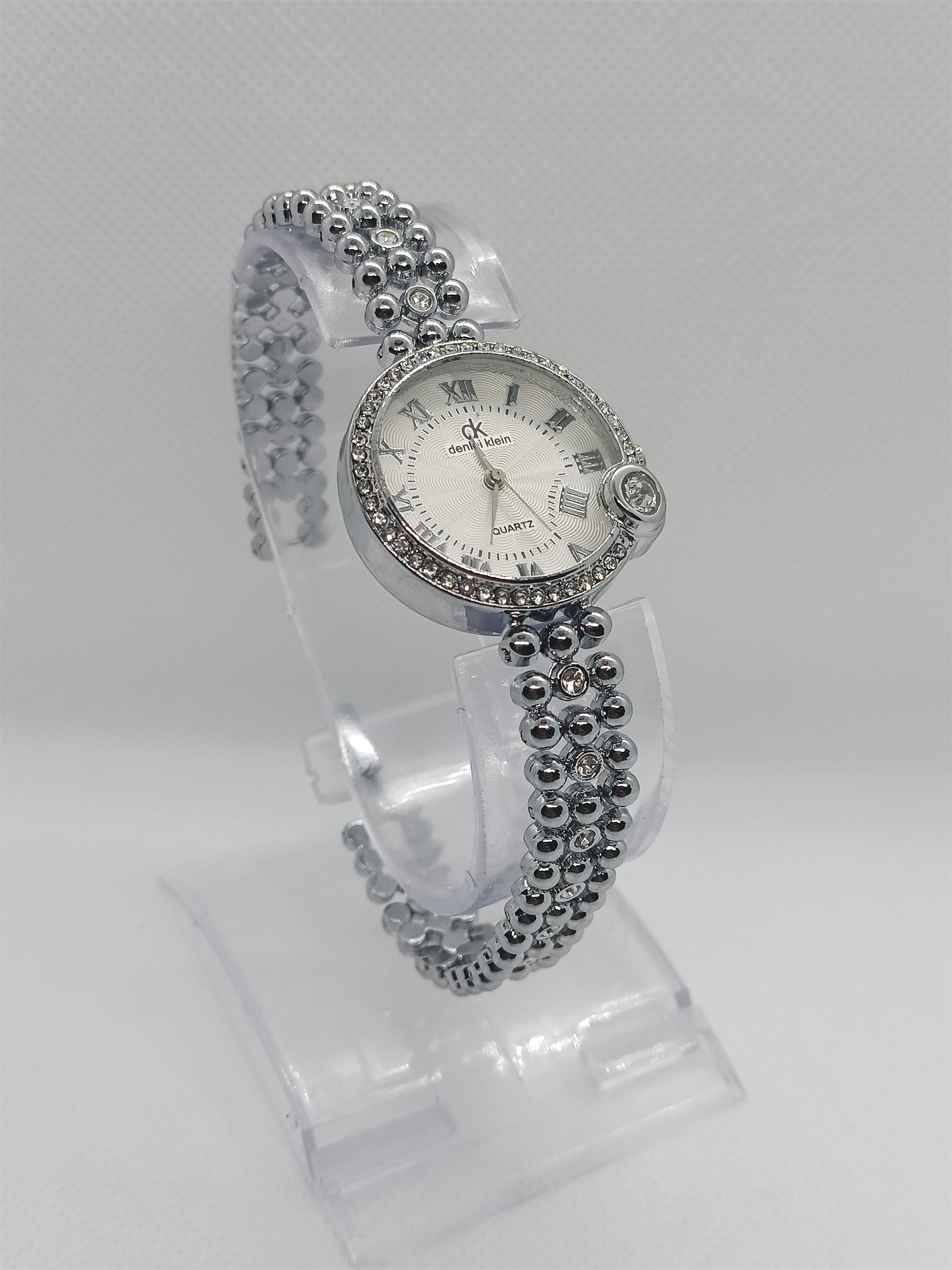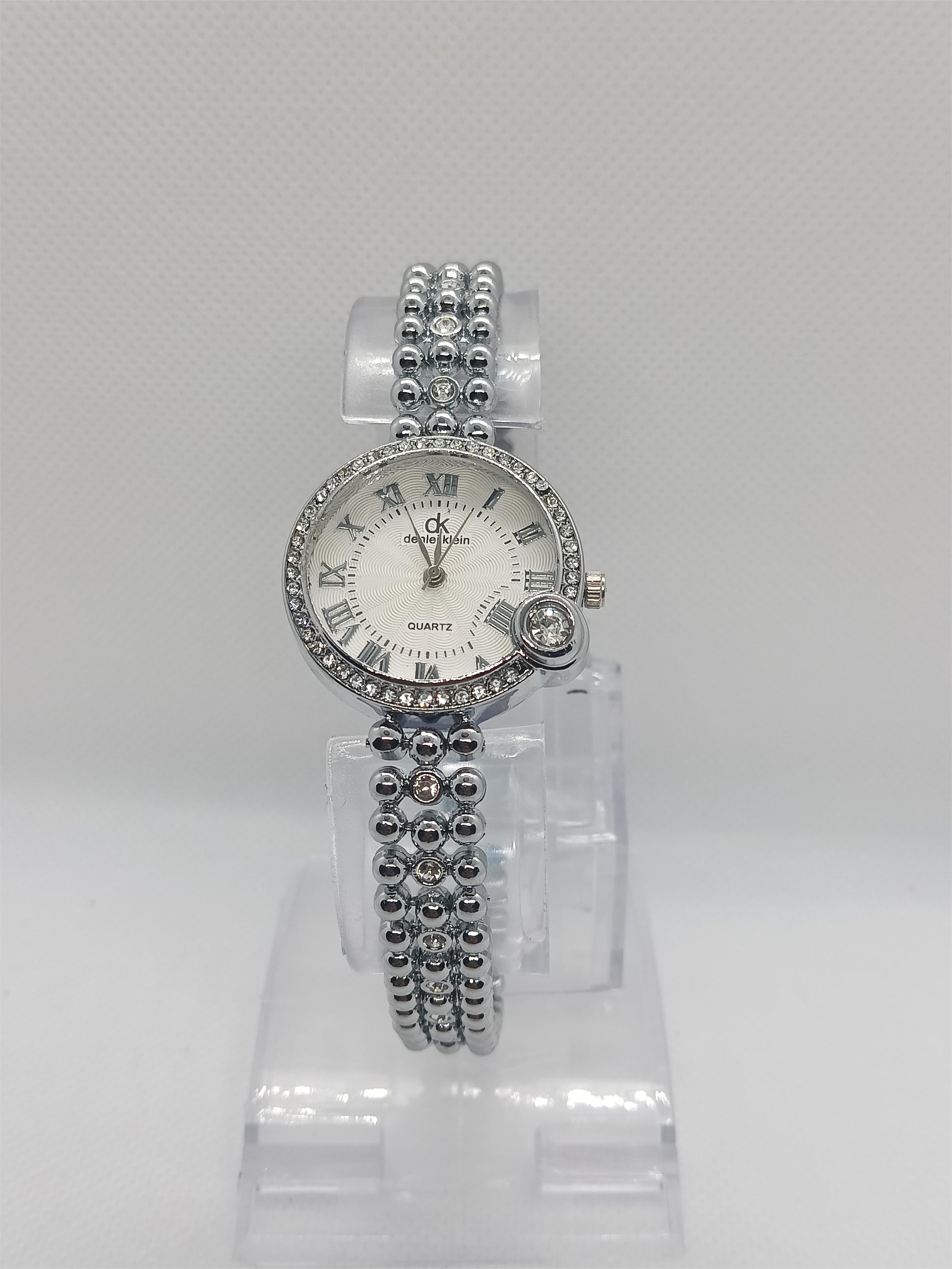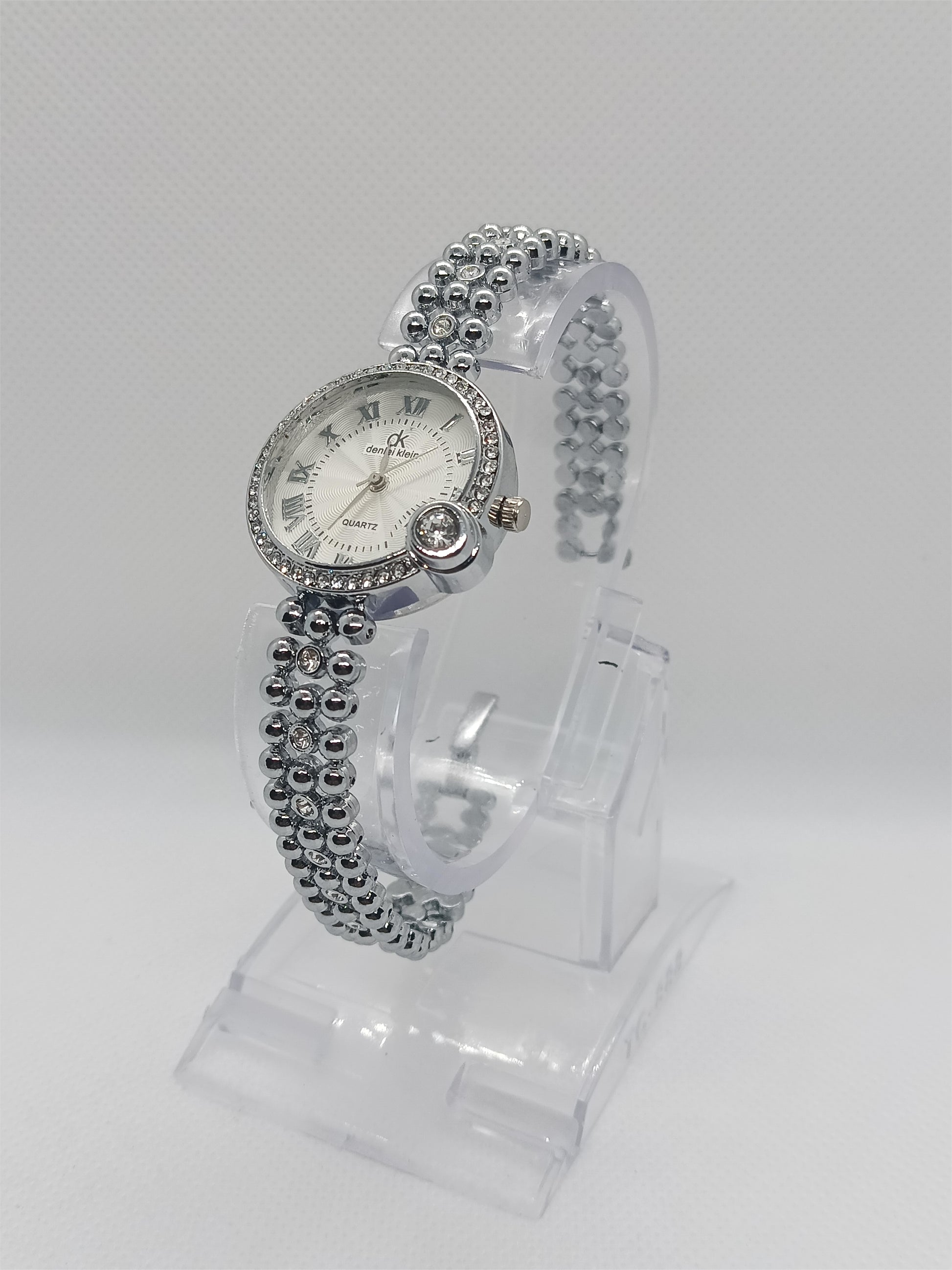 Pearl Radiance Ladies Watch – Silver Beaded Bracelet, Crystal Accent, Premium Classic Design