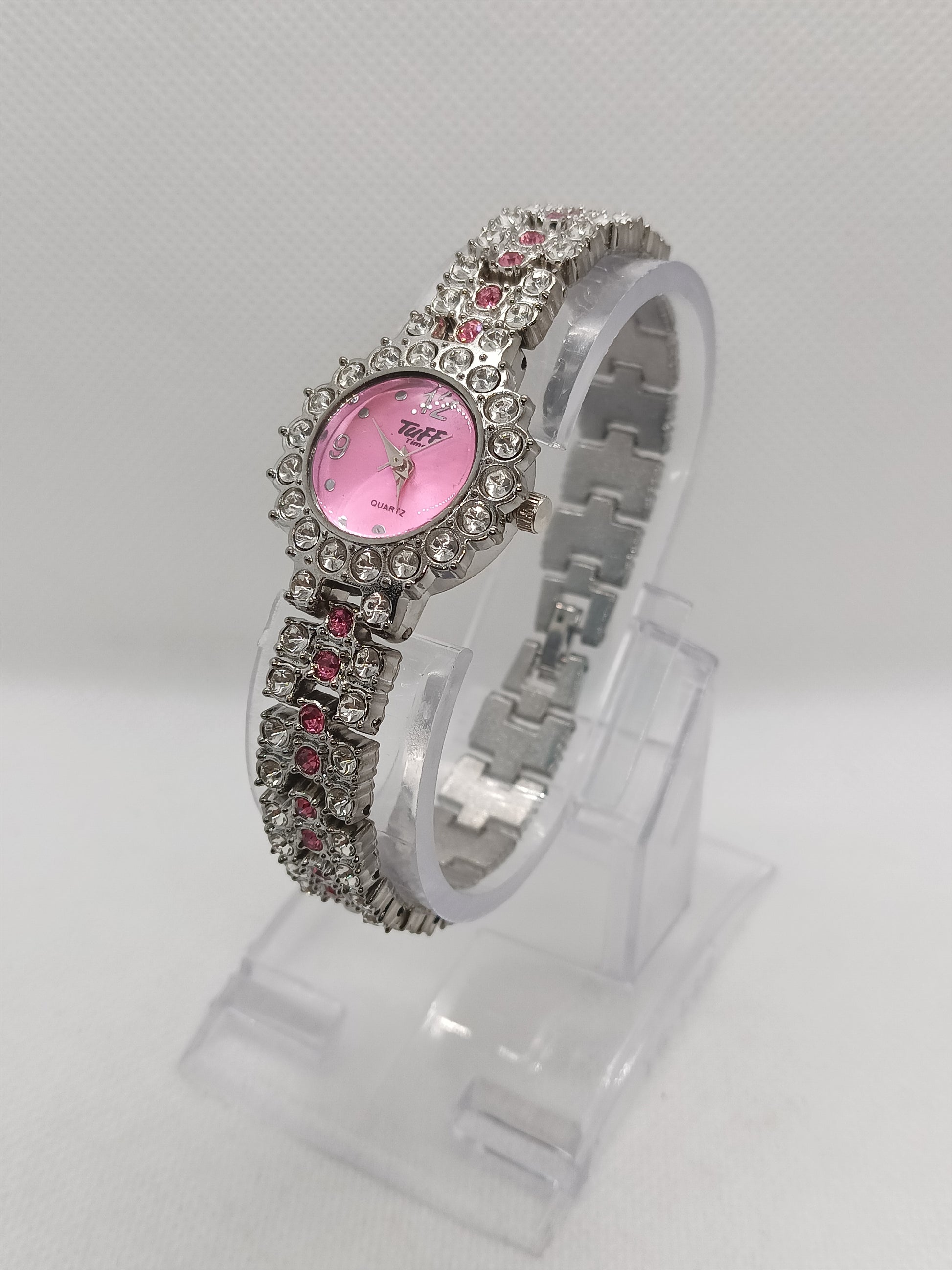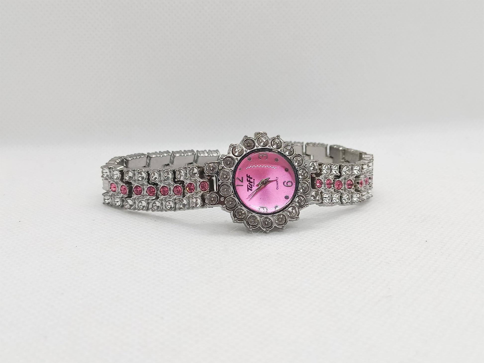 Charming and eye-catching, this silver link watch pairs a frosted metallic bracelet with vibrant ruby-pink stones beautifully framing the dial. Designed like jewelry, it instantly elevates your look and adds a hint of celebration to even the simplest outfits. Light on the wrist yet rich in detailing, it’s perfect for festive occasions, special dinners, or anyone who loves delicate glamour with a feminine touch.
