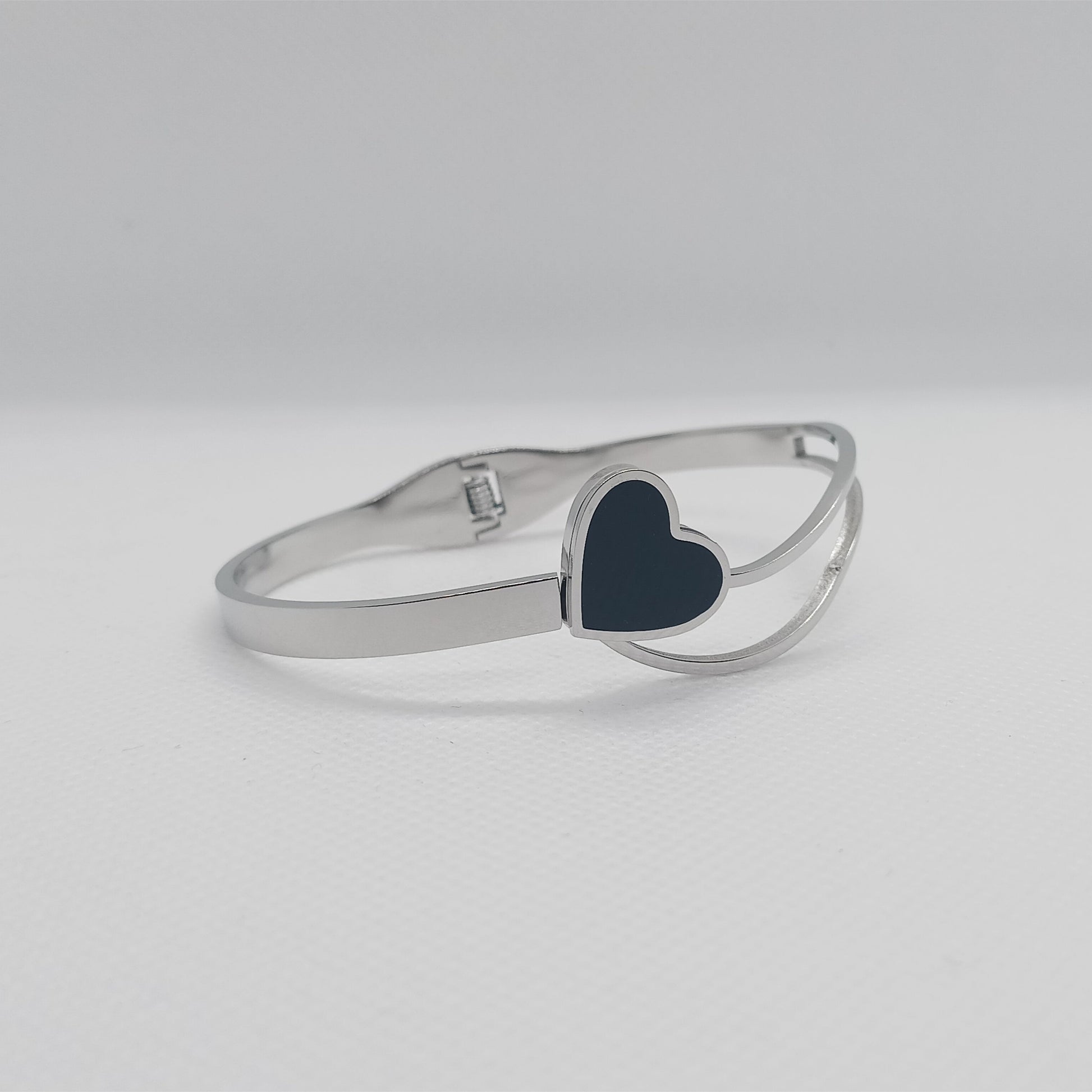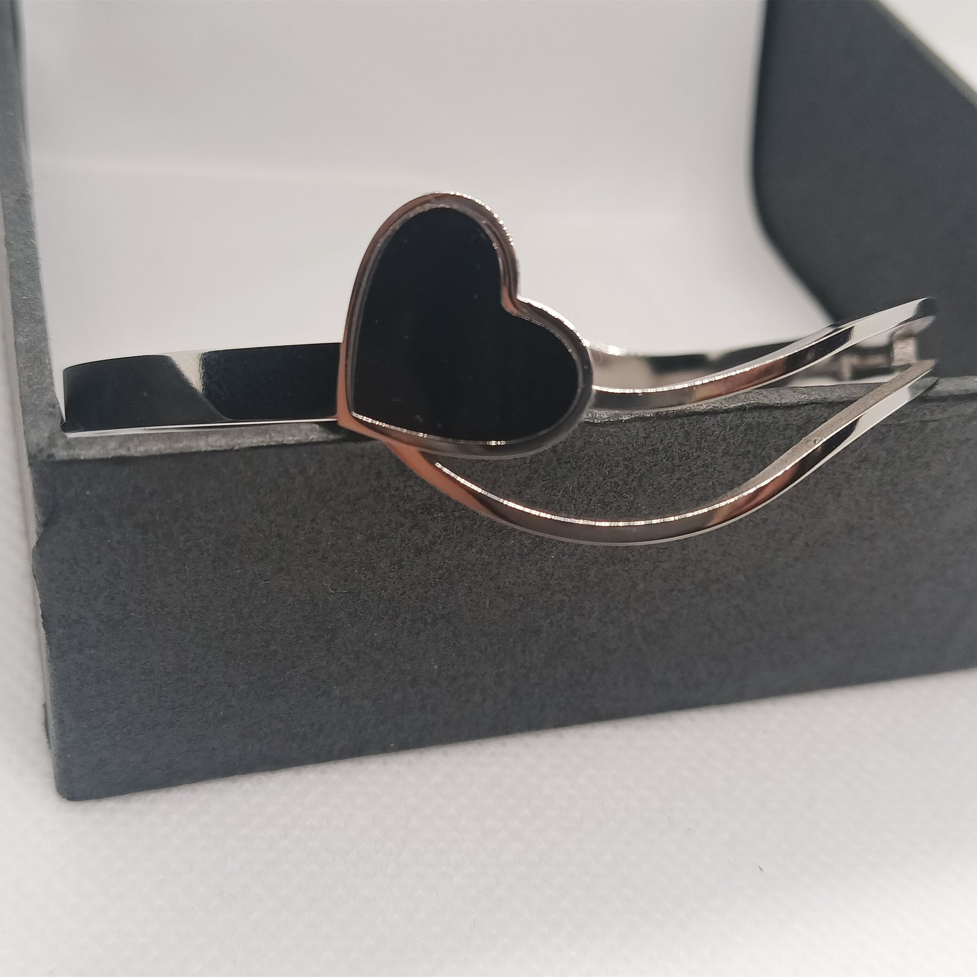 Add a touch of elegance to your style with this Silver Stainless Steel Heart Bracelet featuring a sleek black enamel design. Crafted from high-quality stainless steel, this bracelet is resistant to rust and tarnish, making it perfect for everyday wear. The chic heart centerpiece symbolizes love and charm, while the secure clasp ensures a comfortable fit. Whether you wear it casually or as a statement piece for special occasions, this bracelet is a timeless addition to your jewelry collection. An ideal gift for birthdays, anniversaries, or someone special.