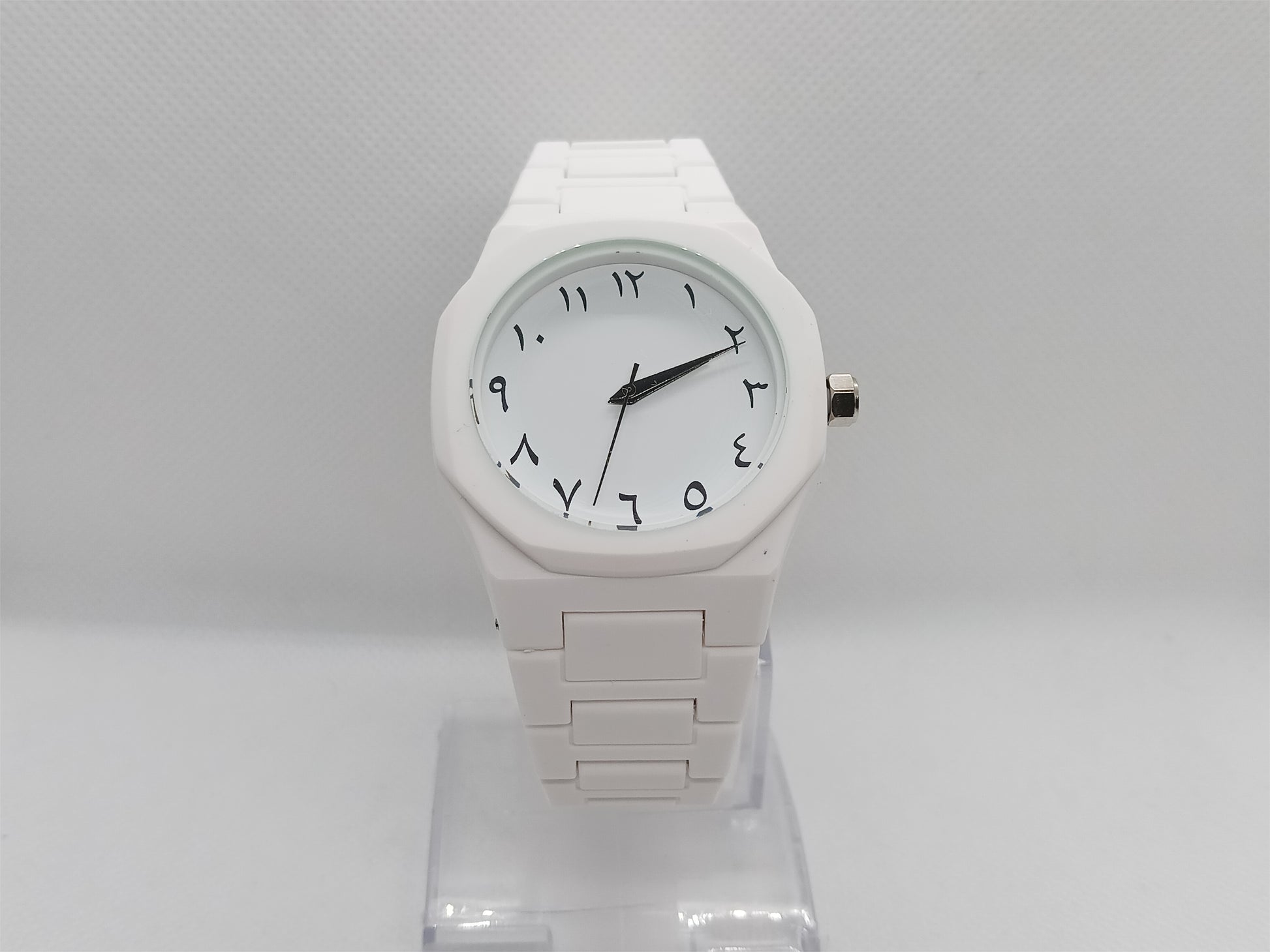 A soft yet expressive style piece that adds purity to your everyday look. The crisp white design is complemented by subtle Arabic numerals, offering a perfect blend of modern minimalism and classic charm. Its lightweight build ensures you enjoy the elegance without the weight.